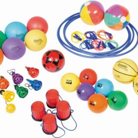 Deze set bevat alle nodige materialen rond psychomotoriek verpakt in handige tas (72x36cm).