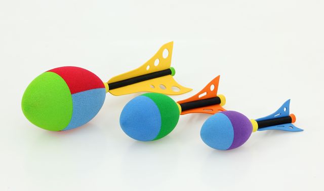 Spoel in kunststof met houten stokken.