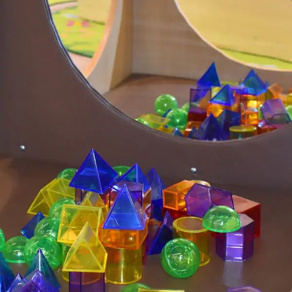 Een kubus voor de kleintjes – kruip gewoon naar binnen en laat je fascineren door de spiegels (1x aan het plafond, 1x aan de achterwand). Een geweldig spektakel voor de zintuigen, om te experimenteren en te ontdekken. Vloer en spiegel met kunstlederen omslag.