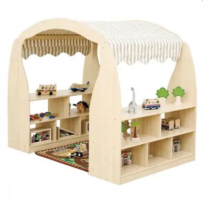 Ontdek de veelzijdigheid en het speelplezier van het Rollenspelhuisje, een unieke combinatie van een speelhuis, ruimteverdeler, en opbergsysteem. Dit innovatieve ontwerp brengt een nieuwe dimensie in de wereld van kinderspel. Het stevige stoffen dak en de 10 opbergvakken bieden kinderen een overvloed aan mogelijkheden om hun spel te organiseren en te personaliseren. Of het nu gaat om een speelgoedwinkel, een supermarkt, of een gezellig hoekje, dit huisje past zich moeiteloos aan de fantasie van de kinderen aan.