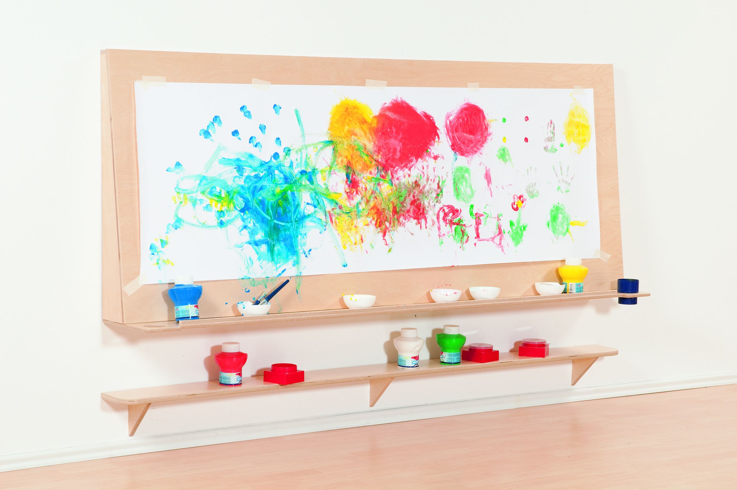 Toevoegen aan winkelwagenSchilderwand om aan de muur te bevestigen. Inclusief wandmontagemateriaal. Aan de onderkant is een plank en een bekerhouder bevestigd.