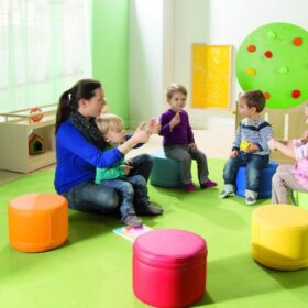 Materiaal: Polyfoam-kern (RG 28/70) met kunstlederen hoes van 60% polyurethaan, 26% polyester, 14% katoen, afveegbaar, vlamvertragend.