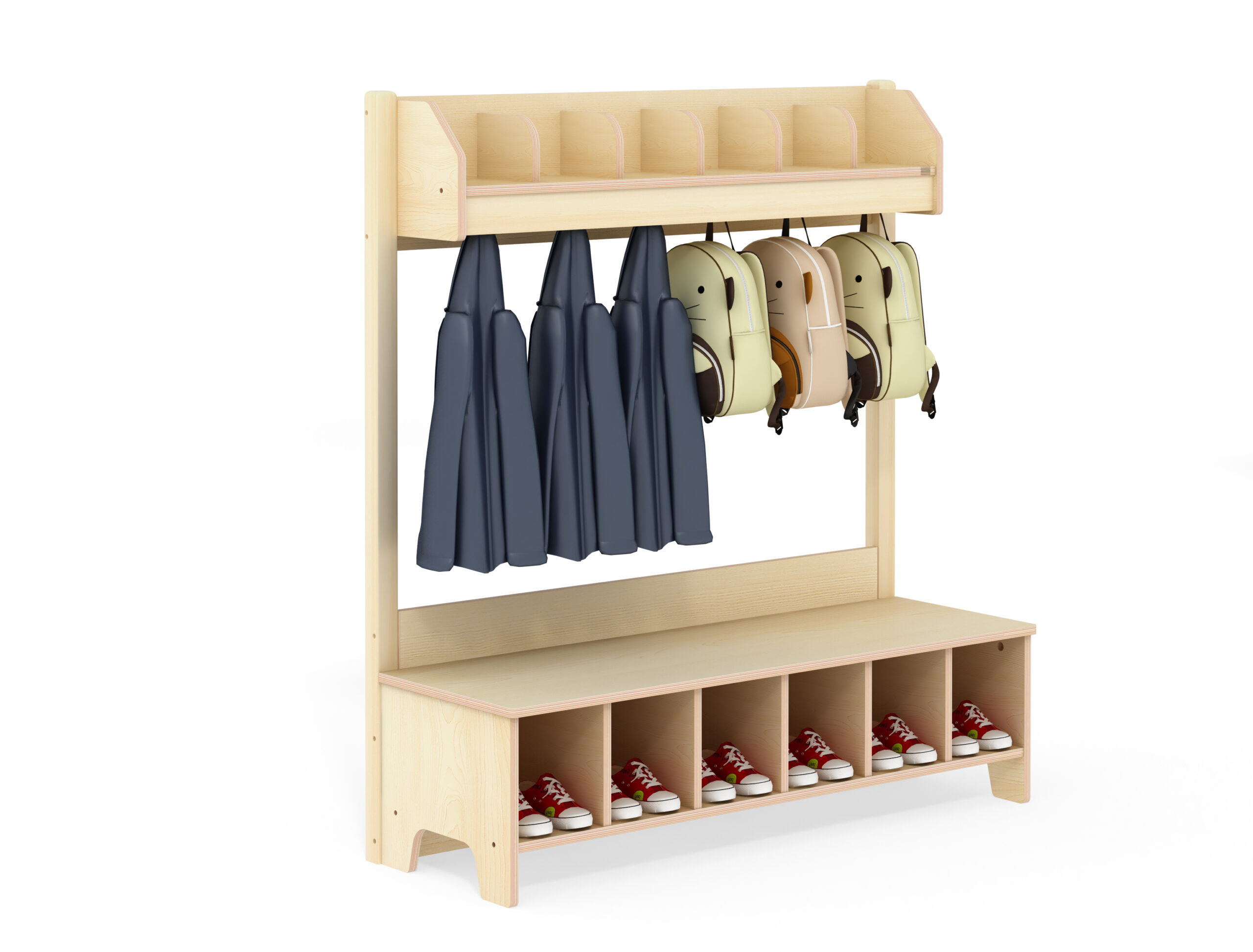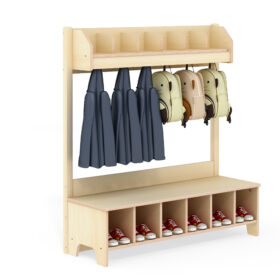 Dankzij het doordachte ontwerp en ruime vakken biedt dit schoenenrek een optimale benutting van de opbergruimte en creëert een aangename omgeving voor zowel kinderen als begeleiders