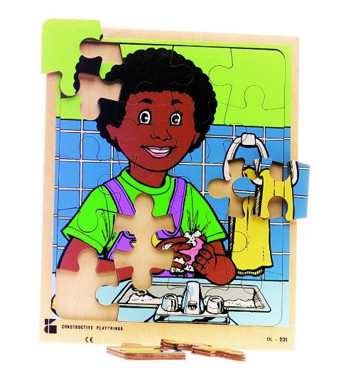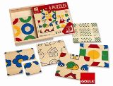 Een set van 6 heldere kleurrijke en kwalitatieve puzzels geleverd in een stevige houten kist.