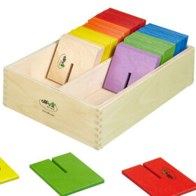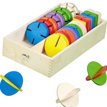 – 8 lage ronde houten toren (4 blauw, 4 oranje)
