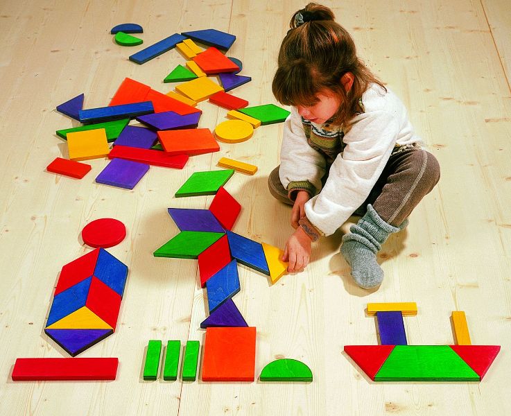Met deze grote, handige, geometrische vormen kunnen kinderen prachtige grootschalige patronen en figuren maken. Alle onderdelen zijn perfect op elkaar afgestemd.