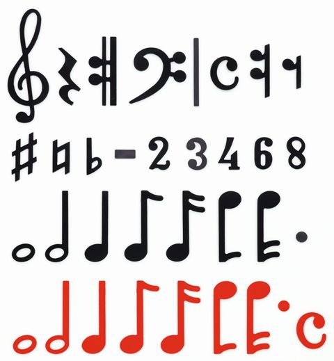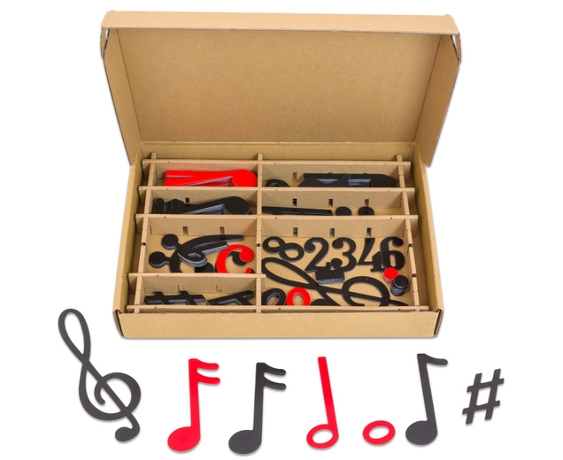 Alle noten zijn gemaakt van stevig plastic en zijn magnetisch aan de achterkant, ideaal voor flip-overs en de magnetische toonladder (V84631). 240-delige set in de kleuren rood en zwart.