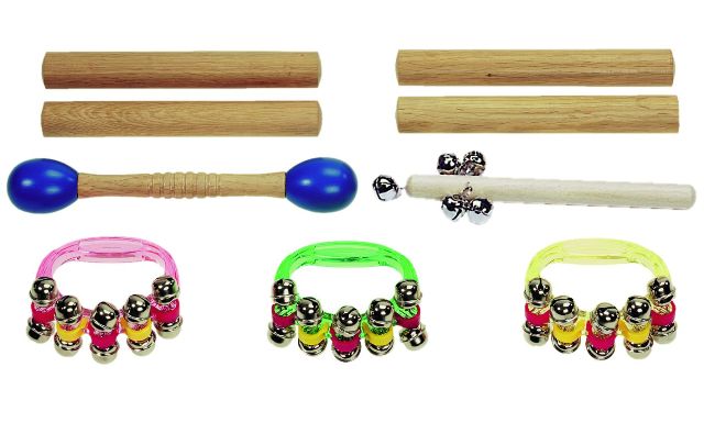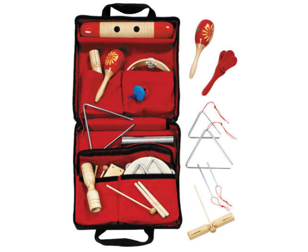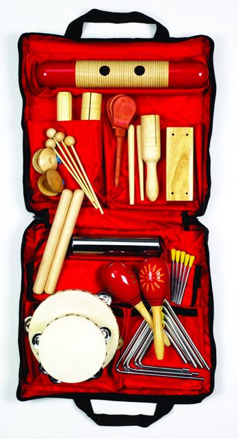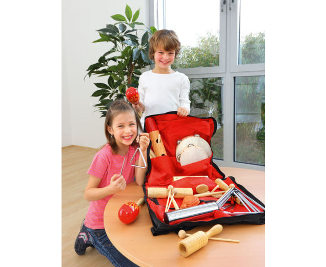 Stevige nylontas met de inhoud van ritmeset 1 met volgende instrumenten extra ingesloten: