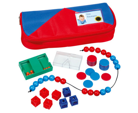 Toevoegen aan winkelwagenWitte kunststof getallenband, 2,5 cm hoog voor leerlingen, getallen van 0-1000 met rode en blauwe markeerklemmen, in kunststofdoosje.
