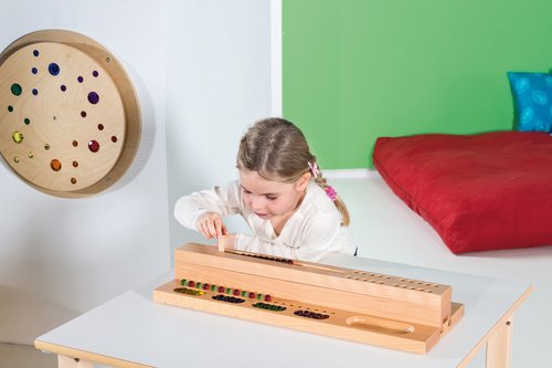 Toevoegen aan winkelwagenEerst wordt een reeks met knikkers in het kanaal bovenaan geplaatst en beide spelers (of 1 speler) onthouden dit.