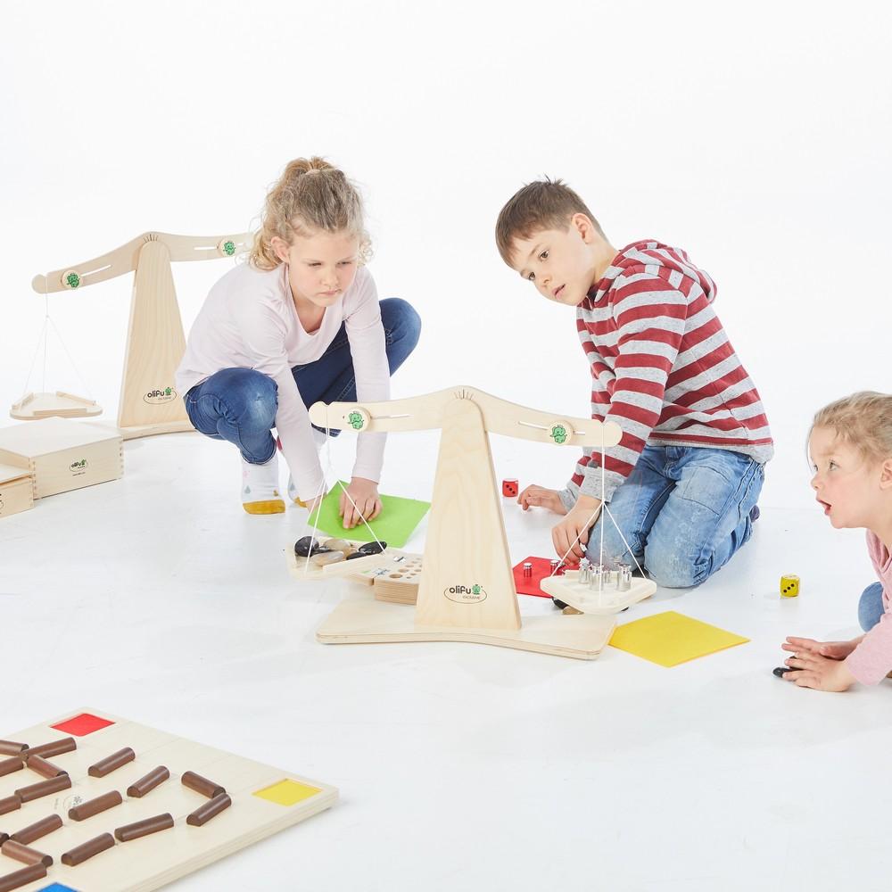 Dwarsbomen kan uitgebreid worden met een weegschaal, gewichten en rivierstenen (zie de complete set OL09059 ).