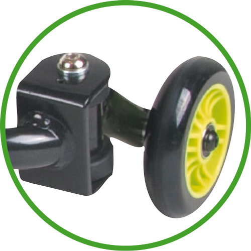 De achterwielen hebben inderdaad een uniek zwenksysteem waardoor de Bikez Snake superwendbaar wordt. Door met je zitvlak extra kracht op de achterwielen uit te oefenen stuurt de Bikez Snake zowel aan de voor- als achterzijde, waardoor er een extreem kleine draaicirkel ontstaat.