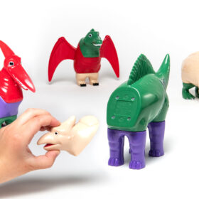 De wielen, cockpits, vleugels en laadbakken kunnen makkelijk op de staven worden vastgeklikt.