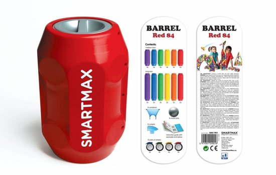 De Smartmax Barrel is een ideale magnetische bouwset en bevat 84 elementen waarmee auto′s, vrachtwagens en vliegtuigen gemaakt kunnen worden.