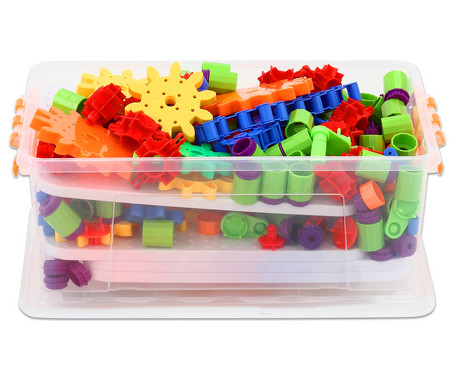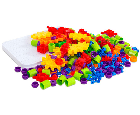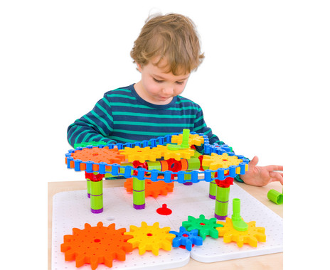 In elkaar klikkende bouwstenen en tandwielen stimuleren het probleemoplossend vermogen en de fijne motoriek. Door met deze set te spelen leren de kinderen over mechanica en techniek.
